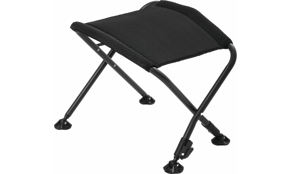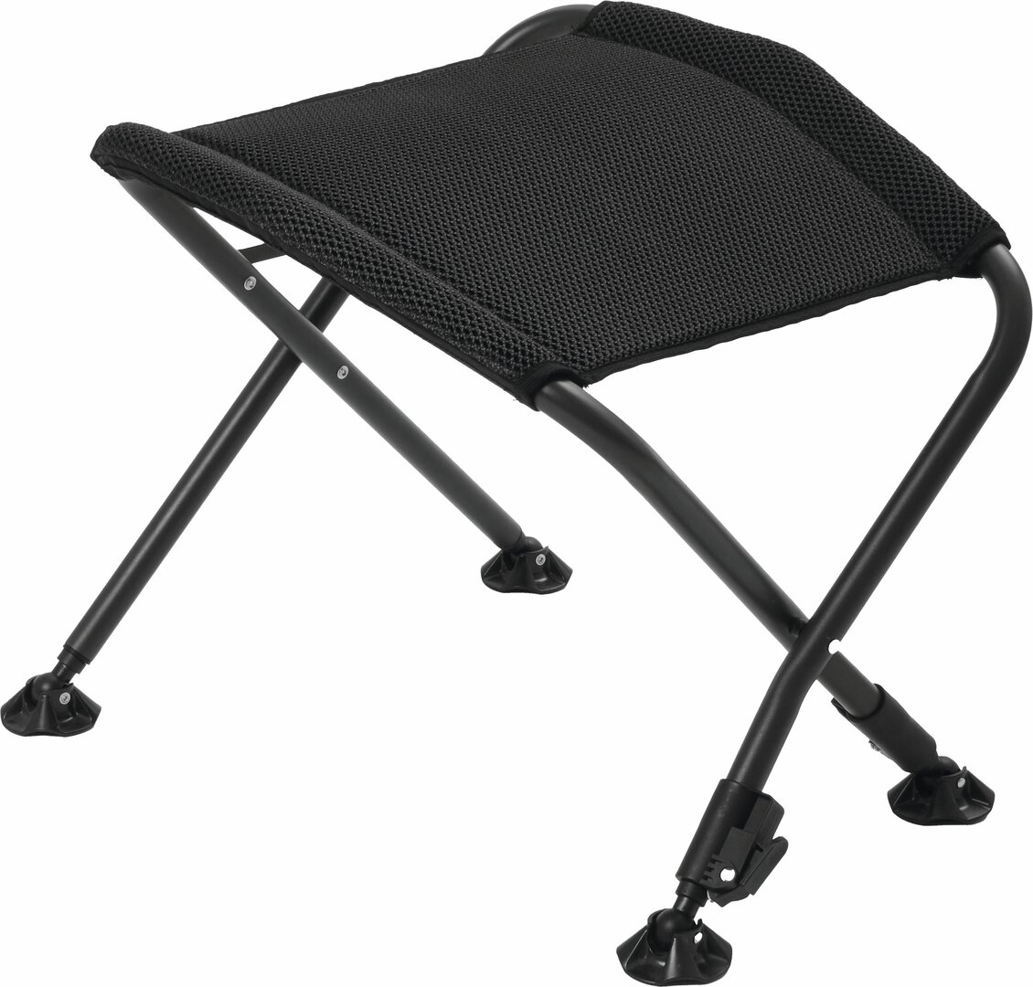 Freistehende Fußstütze besteht aus einem robusten Aluminium-Rundrohrrahmen und verfügt über höhenverstellbare Teleskop-Vorderbeine sowie schwenkbare Anti-Sink-Füße für Stabilität in jedem Gelände.