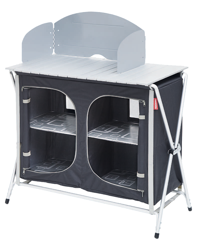 Küchenbox Trigano faltbar. Bezug aus PVC-beschichtetem 500D Polyester (100 % Polyester), Rahmen aus Aluminium.