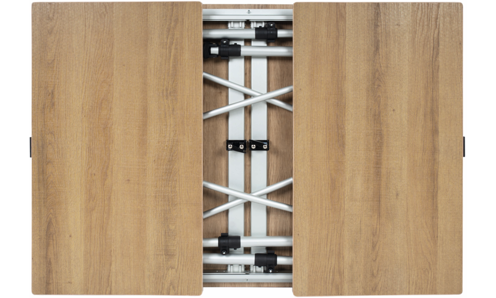 Tisch mit beidseitig ausziehbarem Gestell. Inklusive Tragetasche. Belastbarkeit 30 kg.
