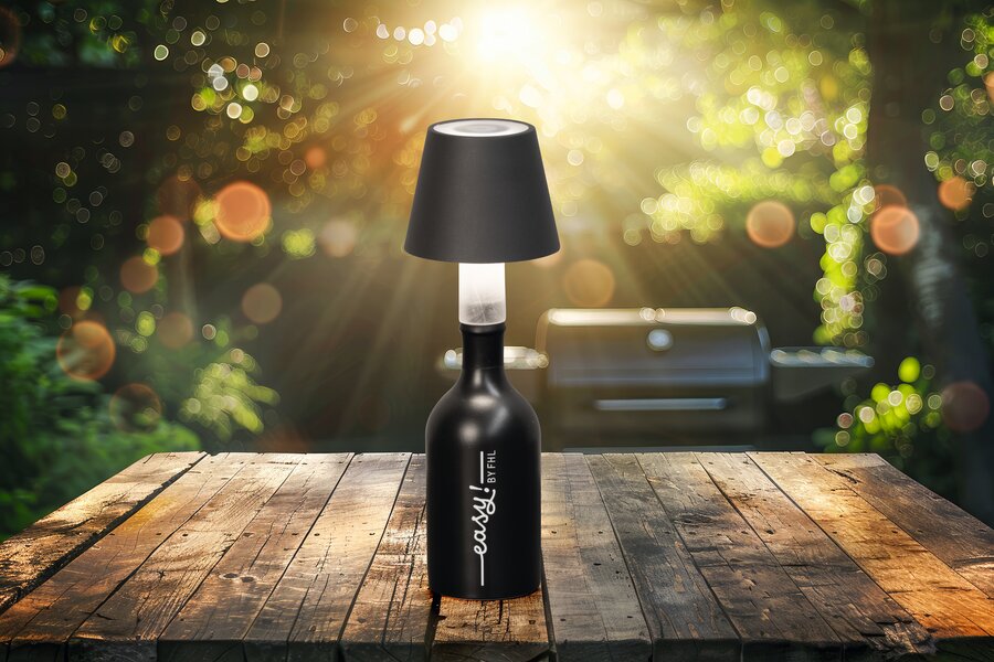 Fiocco Licht trifft Idee. In edlem Grau verwandelt sich die kabellose Fiocco Bottle Lamp im Handumdrehen in ein stilvolles Lichtobjekt einfach auf den Flaschenhals setzen (ø max. 30 mm) und individuelle Lichtmomente genießen. Mit drei einstellbaren Farbtemperaturen (2200 / 2700 / 3500 K) und stufenlosem Sensordimmer passt sich Fiocco deinem Ambiente an von sanftem Stimmungslicht bis zu angenehm hellem Akzentlicht. Die integrierte LED (2,0 W, 190 lm) sorgt für harmonische Ausleuchtung. Der 2000 mAh Akku ermöglicht bis zu 36 Stunden Leuchtdauer kabellos, wetterfest (IP54) und bequem per USB aufladbar.