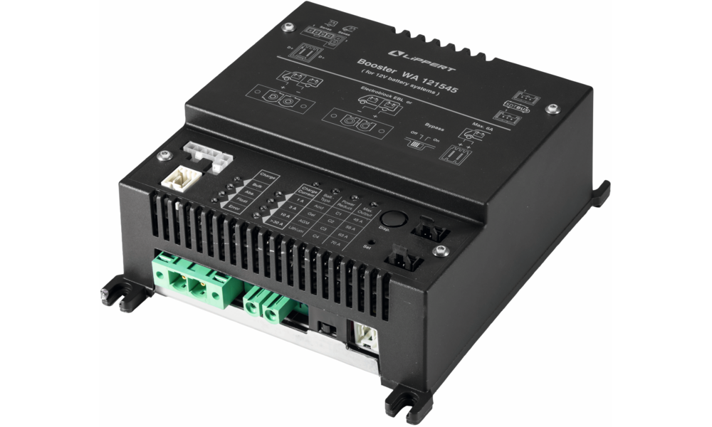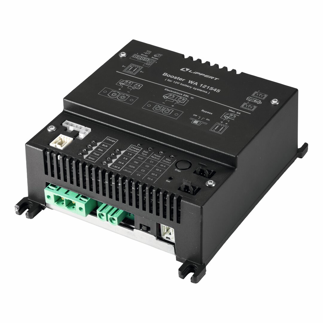 Der Booster WA 121545 ist ein getakteter Auf-/Abwärtswandler mit sehr hohem Wirkungsgrad, der die schwankende Lichtmaschinenspannung ausgleicht und einen hohen Ladestrom zur Verfügung stellt.