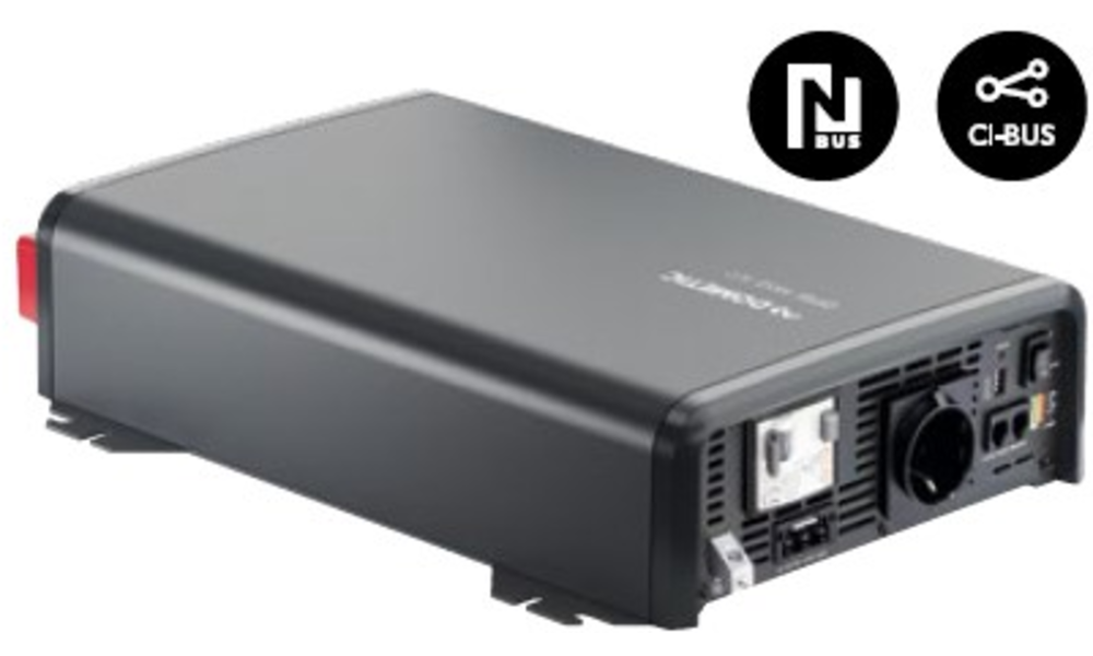 Sinus-Wechselrichter mit integrierten RCD. Somit wird beim Einspeisen in vorhandenen Steckdosen die Installation eines RCD überflüssig. Optimal kombinierbar mit der Dometic Büttner Netzvorrangschaltung MT NU 3600 dank des zusätzlichen Ausgangs über die WAGO-Steckverbindung.
