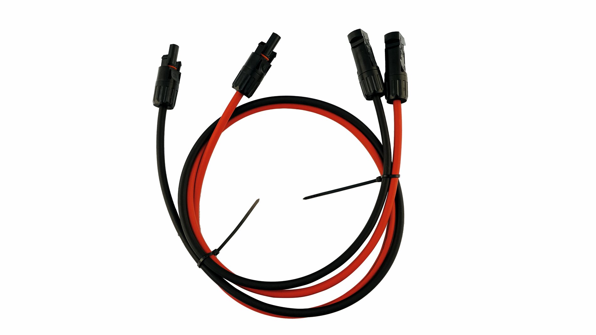 Kunststoffummantelt, sehr flexibel, 2 x 10 mm2, Außen-Ø ca. 8 mm, 1 m lang, rot/schwarz, beidseitig konfektioniert mit MC4-Steckern.