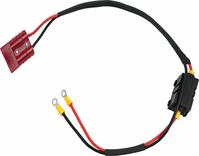 Zubehör inkl.: Clesana Power-Management bereits in der Batterie integriert, Anschlusskabel inkl. 30 A Sicherung, Batterieschale + Gurt, Anschluss-Schrauben
