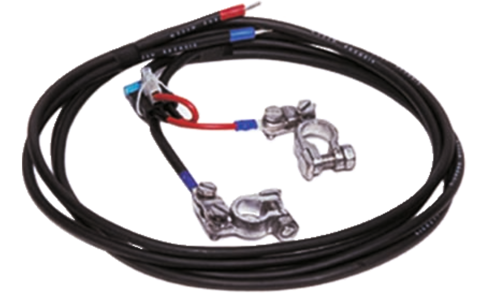 Für die Verbindung von Solarladeregler und Batterieanlage. Erd- und kurzschlusssicher, Plus- und Minus-Leitung mit Batterieklemmen und Aderendhülsen. Plus-Leitung zusätzlich mit Sicherungshalter und Flachsicherung 15 A. Gummi, hochflexibel, 2 x 2,5 mm², ø ca. 12 mm, 1,5-m-Ring,