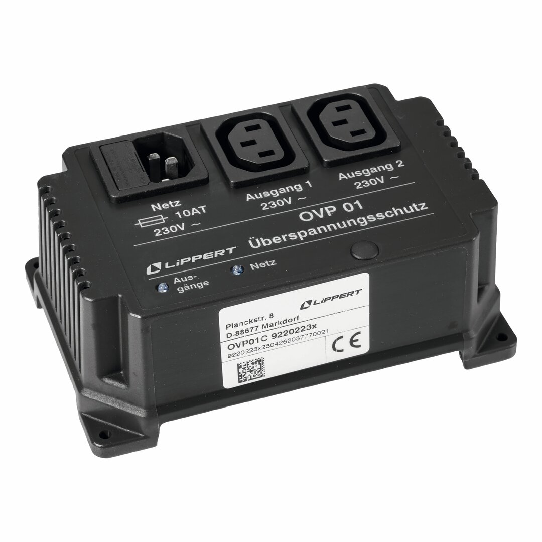 Es wird zwischen den Netzanschluss und die zu schützenden Schaudt-Geräte geschaltet. Bei einer auftretenden Überspannung trennt das Gerät die angeschlossenen Geräte innerhalb weniger Millisekunden vom 230 V-Netz. Die Geräte bleiben so lange abgeschaltet, bis die Netzspannung wieder normale Werte erreicht hat. Lieferung inklusive Kaltgeräteverlängerung.