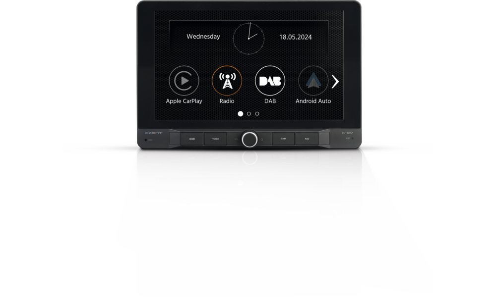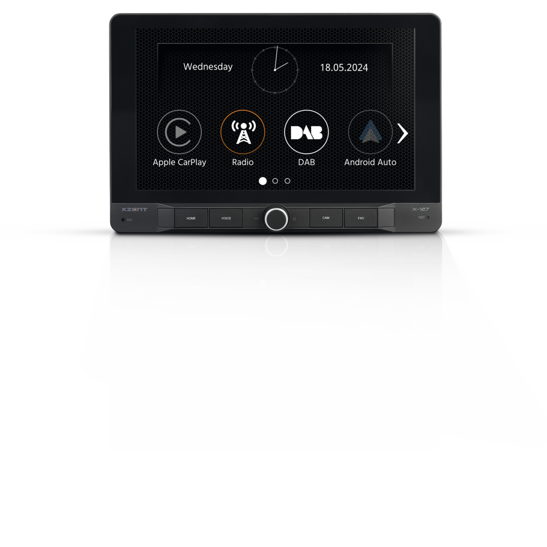 Mit dem X-127 lassen sich Smartphones im Fahrzeug besonders einfach und sicher nutzen. Via USB docken Sie Ihr Handy direkt an den Infotainer an – der X-127 unterstützt dann Apple CarPlay und Google Android AutoTM. Telefonieren, Navikarten nutzen, Nachrichten abhören und diktieren, Songs und Podcasts abspielen – die aufgerufenen Apps steuern Sie bequem über den Touchscreen, per Apple Siri oder den Google Sprachassistenten.