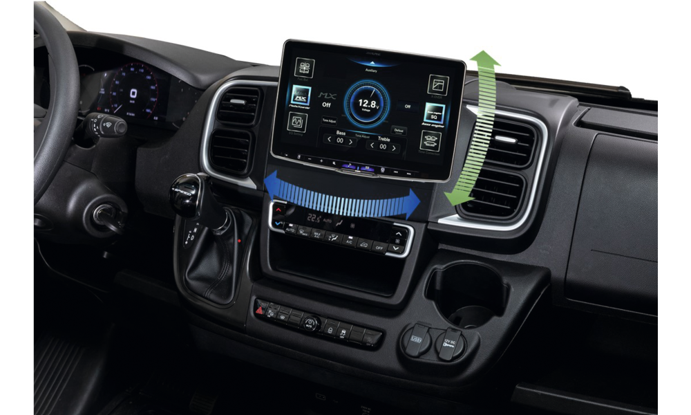 Damit können Sie den Bildschirm in beide Richtungen zum Fahrer oder Beifahrer schwenken.
