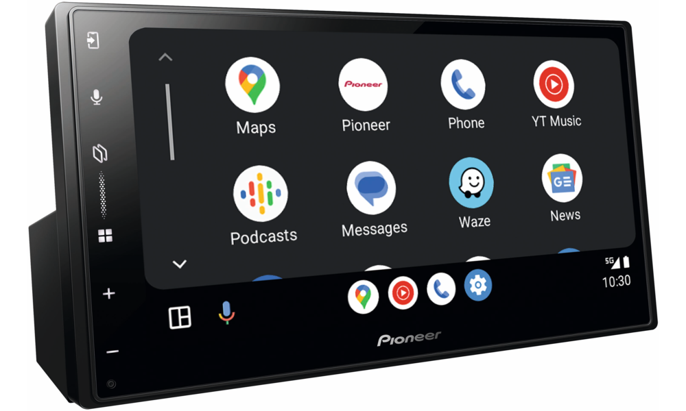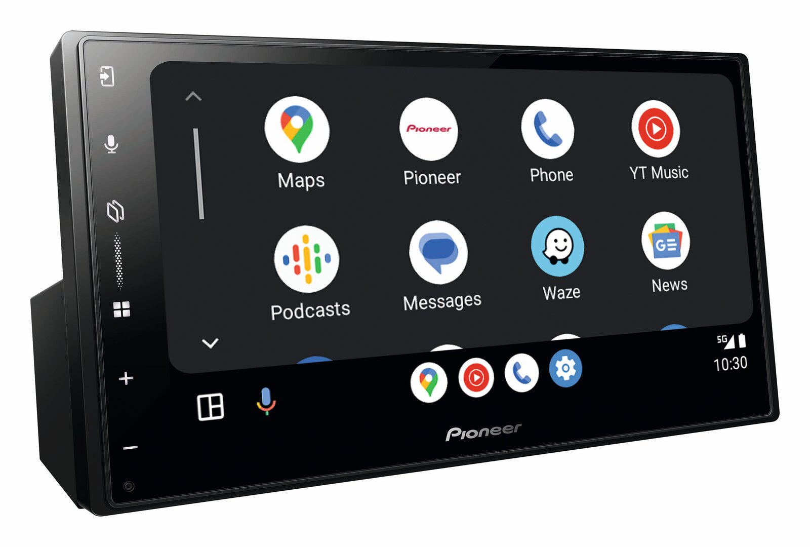 2-DIN-Mediareceiver mit kapazitivem 6,8“-Touchscreen (17,3 cm), 24-Bit-Echtfarbanzeige und drahtloser Smartphone-Anbindung für Apple CarPlay oder Android Auto. Navigation per Google Maps, Apple Maps, Waze oder anderer App über das Smartphone, Bedienung am Bildschirm des Radios.