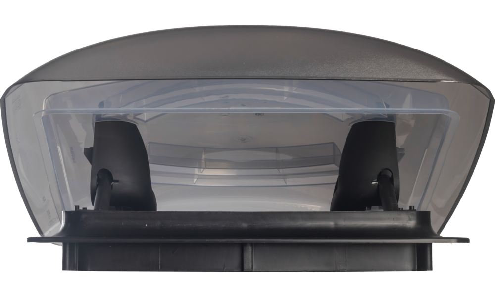 Rauchglashaube mit Teleskopaufstellern, 4-seitig aufstellbar, Hoher UV-Schutz durch getöntes Haubenmaterial, Dauerlüftung zwischen Hauben für reduzierte Kondenswasser-Bildung.