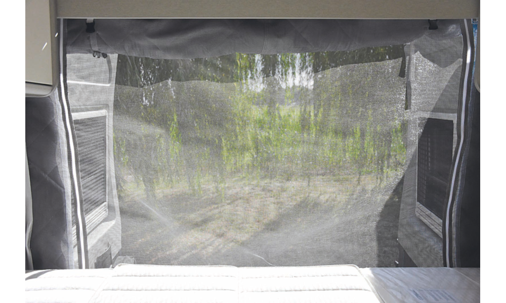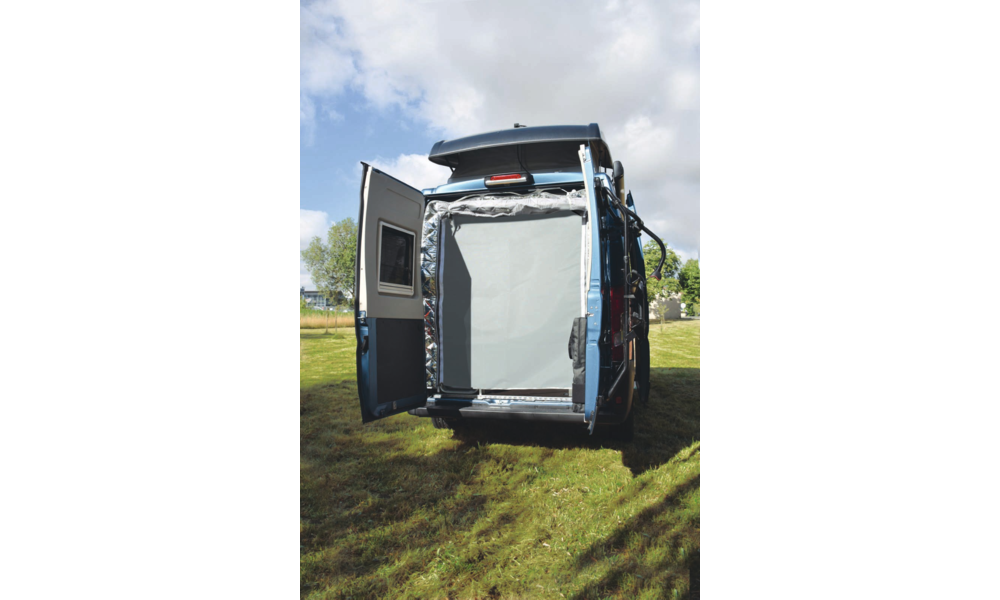 Praktisch: Zugriff auf den Frachtraum ohne Entfernung der Isolierung! Dort wo die Vorhänge mit Reißverschlüssen und Klettband halb geöffnet werden können, entsteht ein großes Fenster. Die Isolierung muss beim Halt und Weiterfahrt nicht entfernt werden.