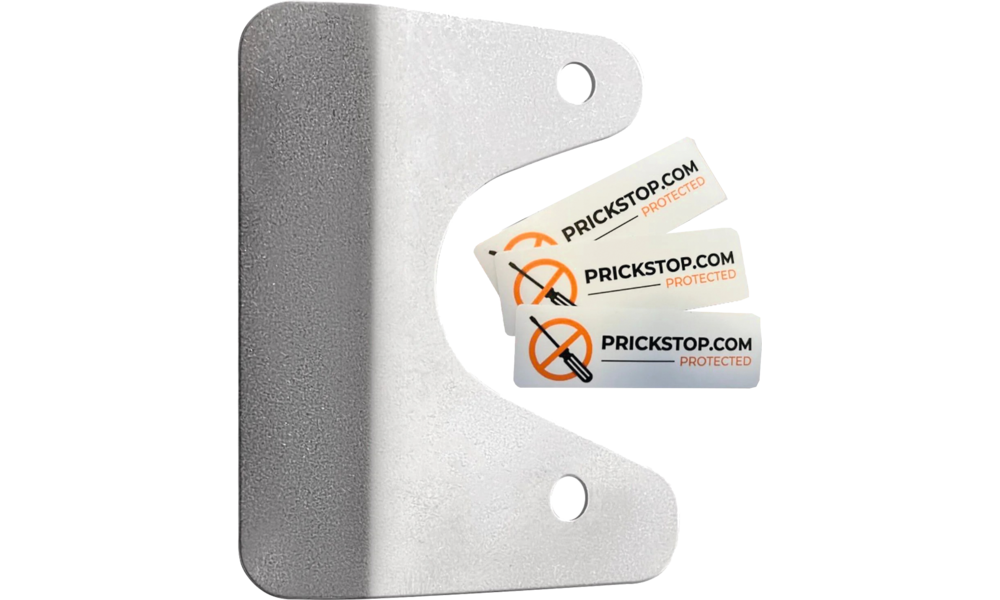 Das Prickstop Schutzblech bietet Ihnen zuverlässigen Schutz vor Einbrüchen in Ihr Wohnmobil. Es verhindert, dass Einbrecher die Tür durchstechen und das Gestänge der Zentralverriegelung aushebeln können. Der Bereich um das Türschloss wird durch ein 1,5 mm dickes Edelstahlblech verstärkt. Dadurch ist es nahezu unmöglich, mit einem Schraubenzieher oder ähnlichem Werkzeug die Tür zu durchdringen.
