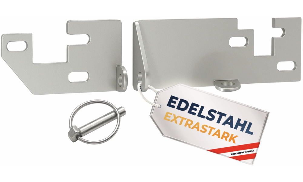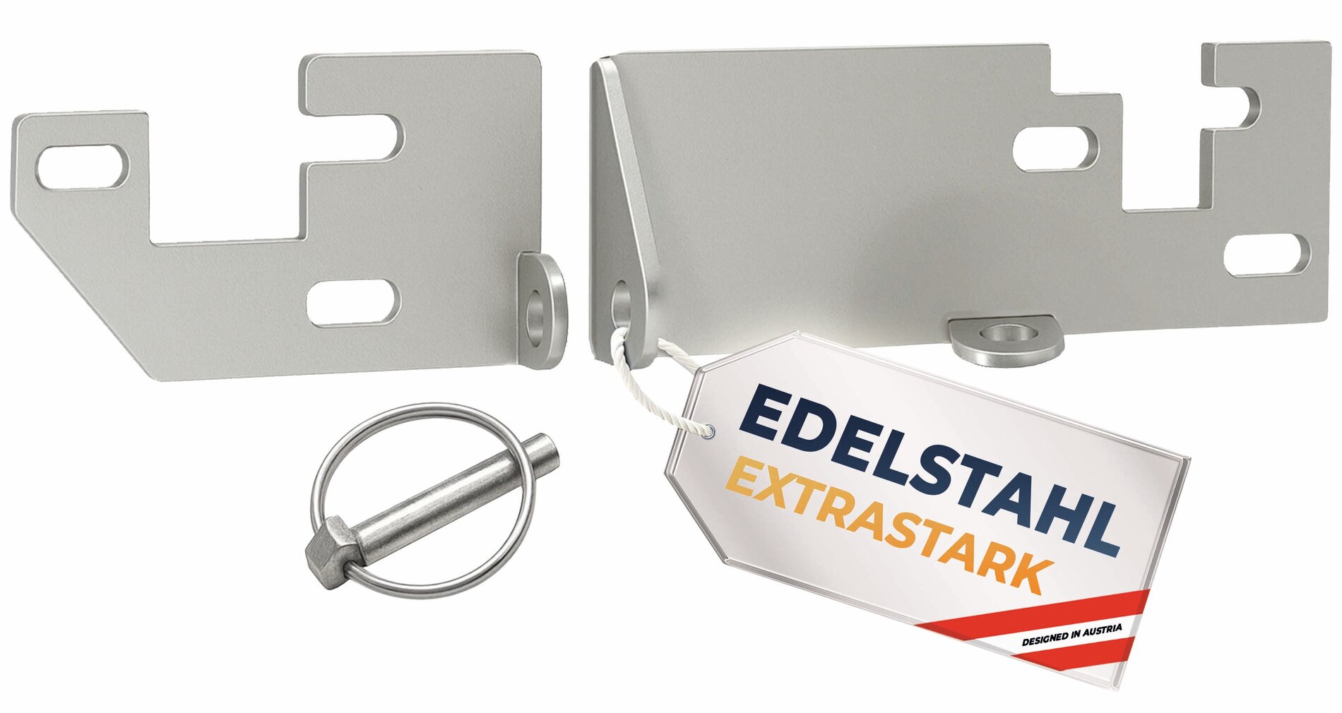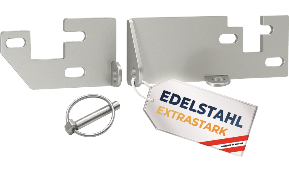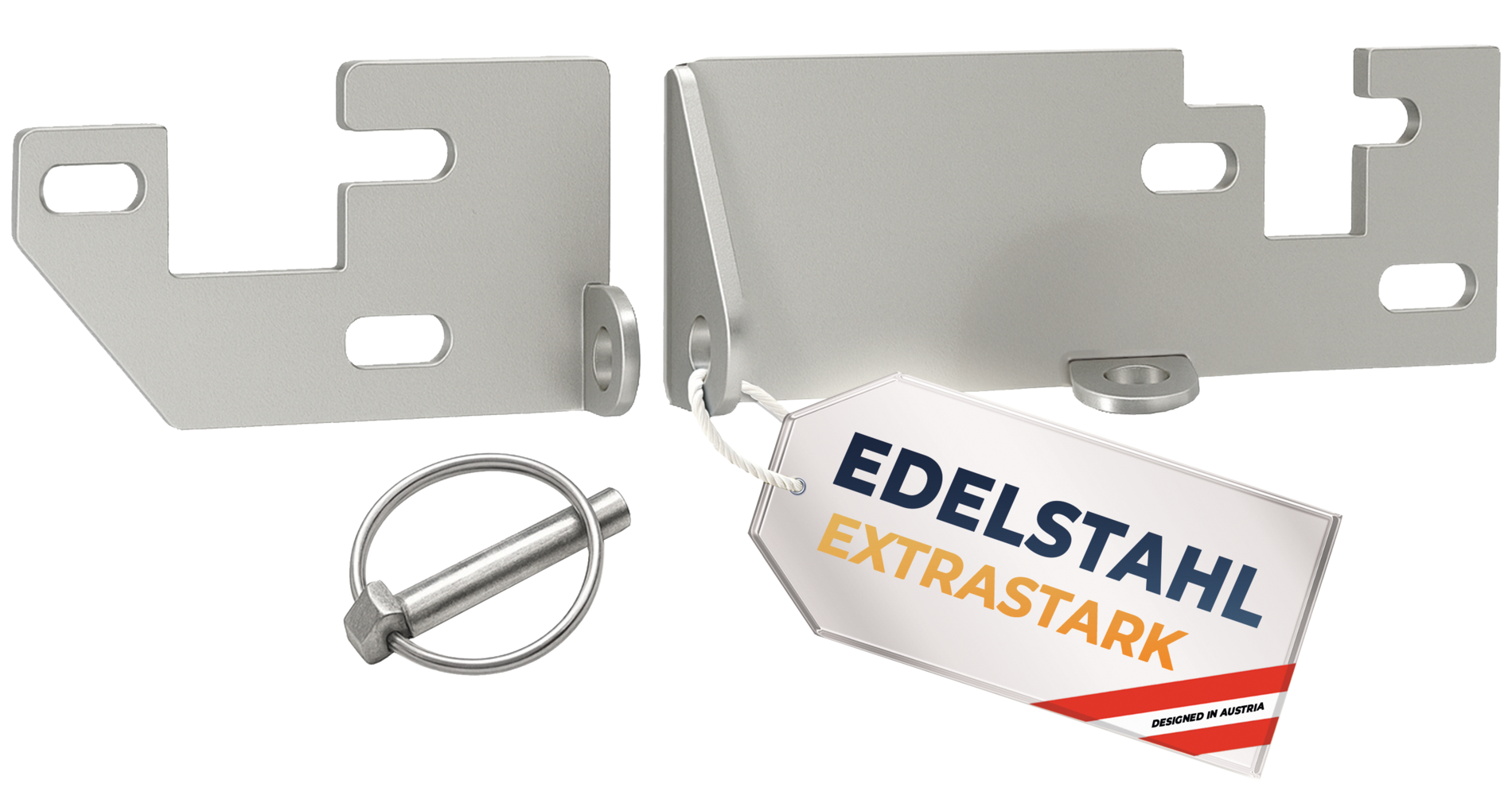 Inklusive Klappsplint. Der Splint kann in der zweiten Bohrung sicher aufbewahrt werden.