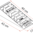 Länge 43 cm Breite / Tiefe 17 cm Höhe 9 cm Gewicht 1,6 kg