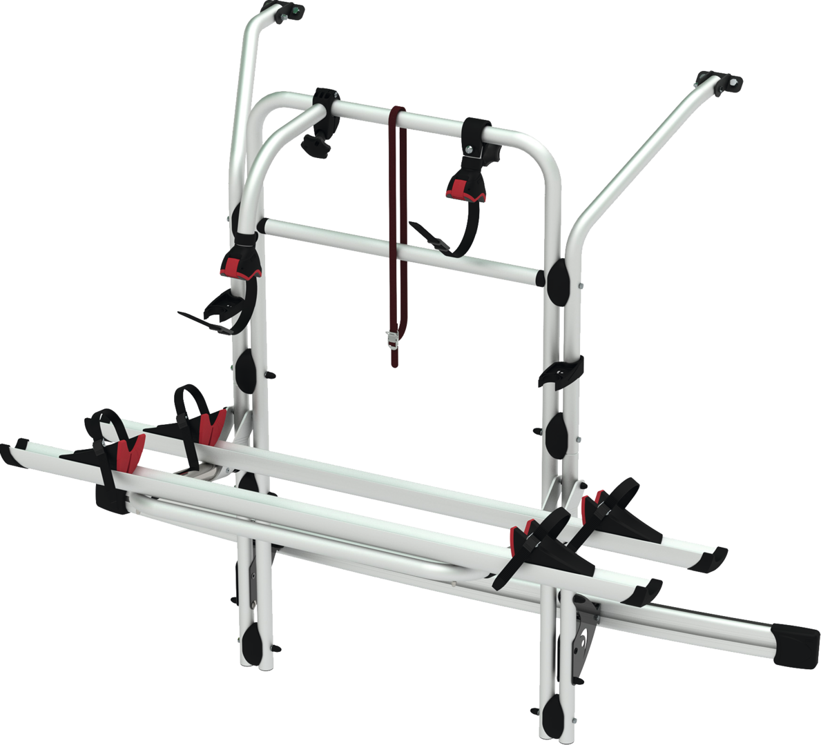 Ermöglicht die Montage des Auflagebügels auf zwei Positionen, eine Standard und eine tiefergesetzt zum einfacheren Beladen der Fahrräder.