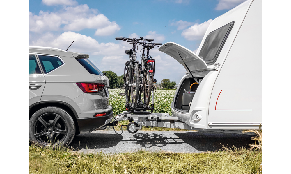Das System bietet eine Nutzlast von bis zu 60 kg und ist somit ebenfalls für die Beförderung von modernen E-Bikes geeignet. Zur Fixierung der Fahrräder stehen abnehm- und abschließbare Rahmenhalter und Spanngurte mit Ratschen zur Verfügung.