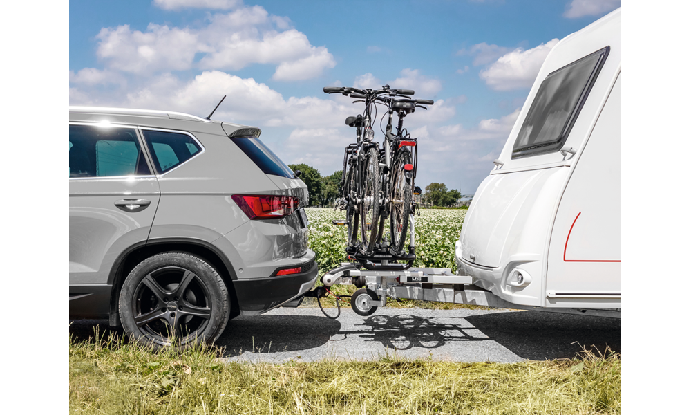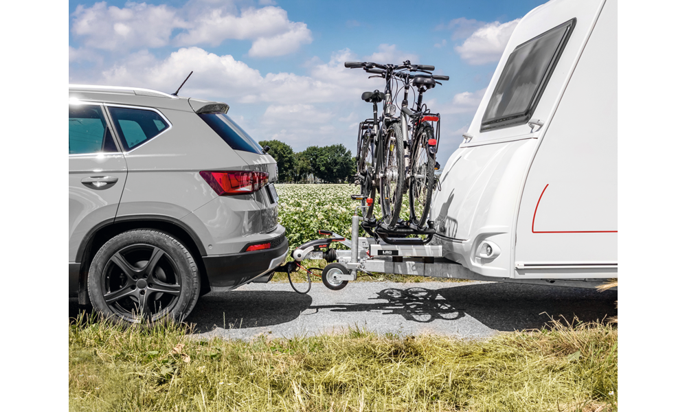 Der Deichsel-Fahrradträger ist für eine stabile und haltbare Befestigung auf der Deichsel eines Wohnwagens konzipiert.