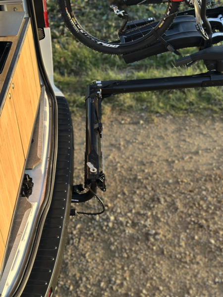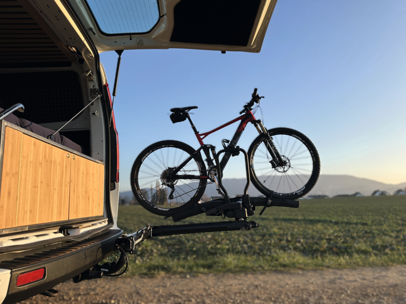 Mit unserem einzigartigen Produkt können so zwei E-Bikes (max. 65 kg Zuladung) einfach 90° weggeschwenkt werden und bieten so vollen Zugang zum Heck deines Fahrzeuges.