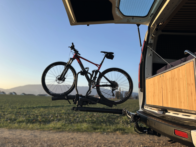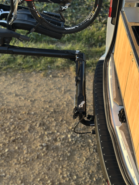 Mit unserem einzigartigen Produkt können so zwei E-Bikes (max. 65 kg Zuladung) einfach 90° weggeschwenkt werden und bieten so vollen Zugang zum Heck deines Fahrzeuges.