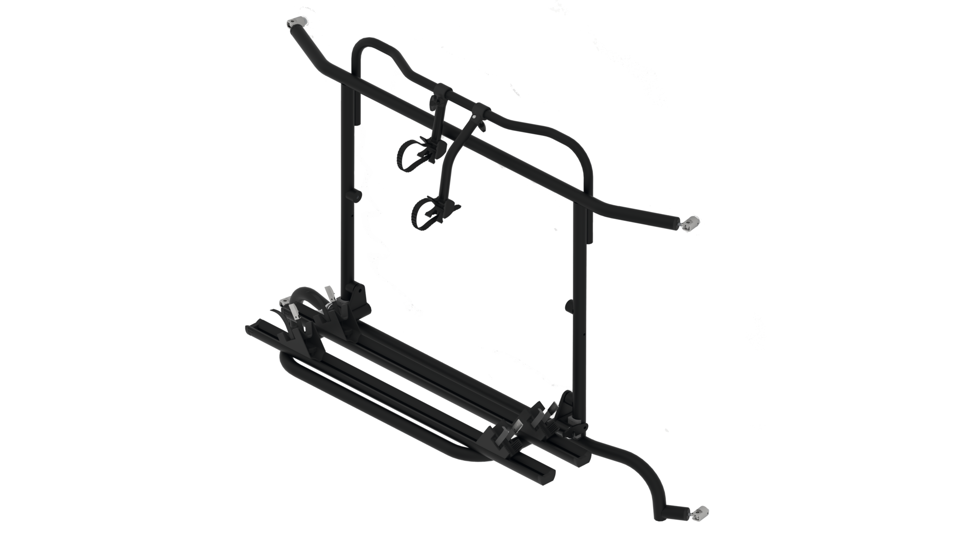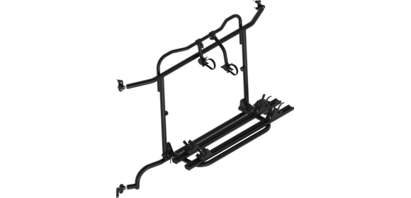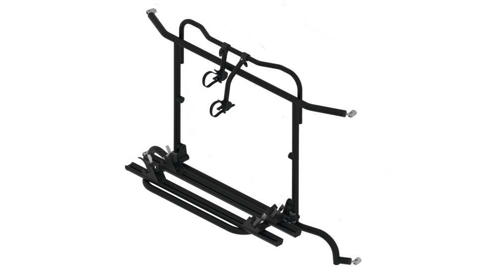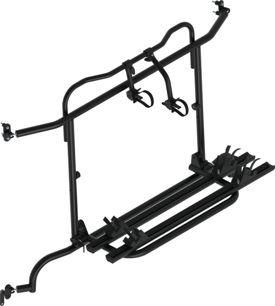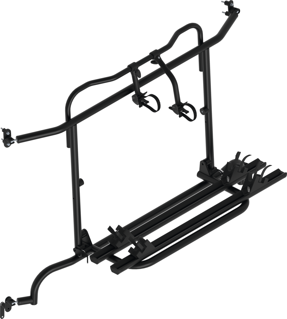Komplett vormontiert! Die Hecktüren sind mit Fahrradträger ohne Beladung aufklappbar.
