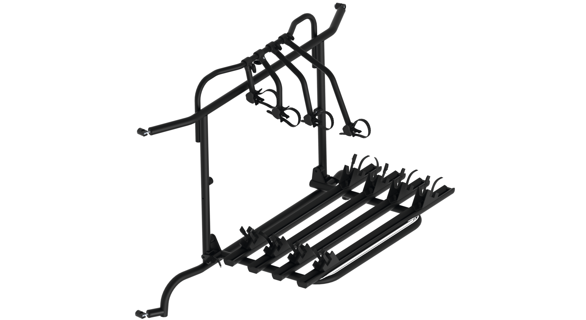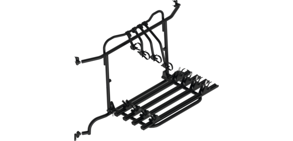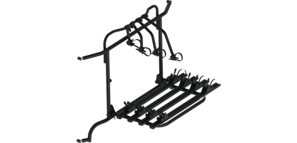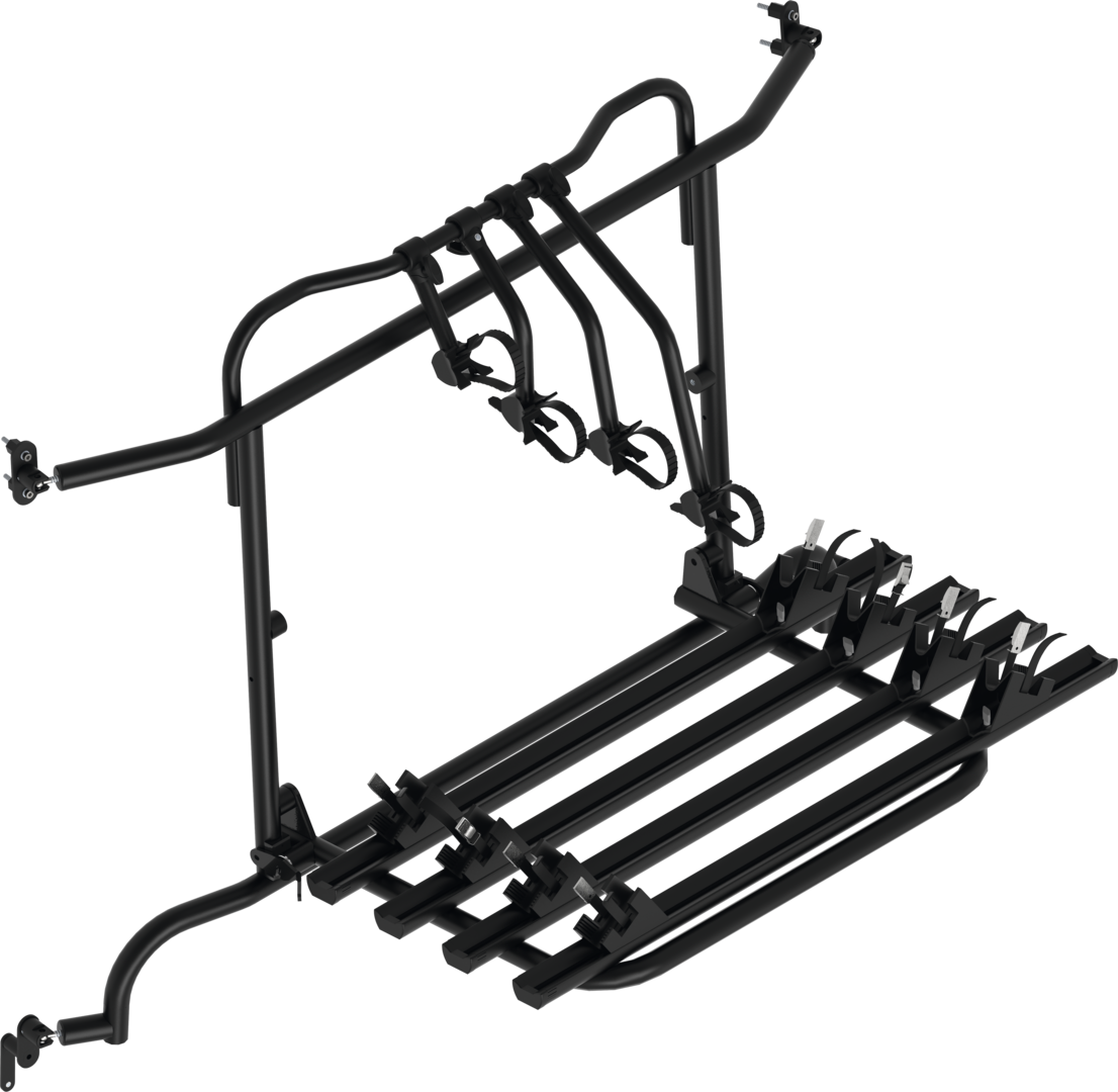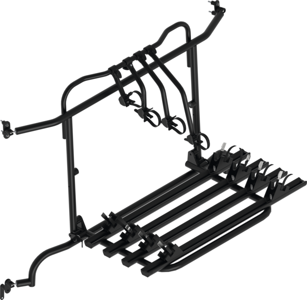 Komplett vormontiert! Die Hecktüren sind mit Fahrradträger ohne Beladung aufklappbar.