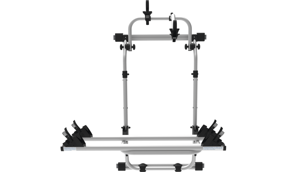 Der Grundträger kann als Hochlader oder mit der optional erhältlichen Beleuchtungsleiste als Tieflader eingesetzt werden. Ein nachträglicher Umbau von Hoch- zu Tieflader ist nach dem Verkleben der Montageschienen nicht mehr möglich. Grundrahmen aus Alu-Rohr, 2 Aluminium-Fahrradschienen mit je 2 Radschalen, 2 Zurriemen, 2 Befestigungskrallen und 2 Spannschienen zur Montage am Fahrzeug. Max. Beladung 2 Fahrräder. Abmessungen