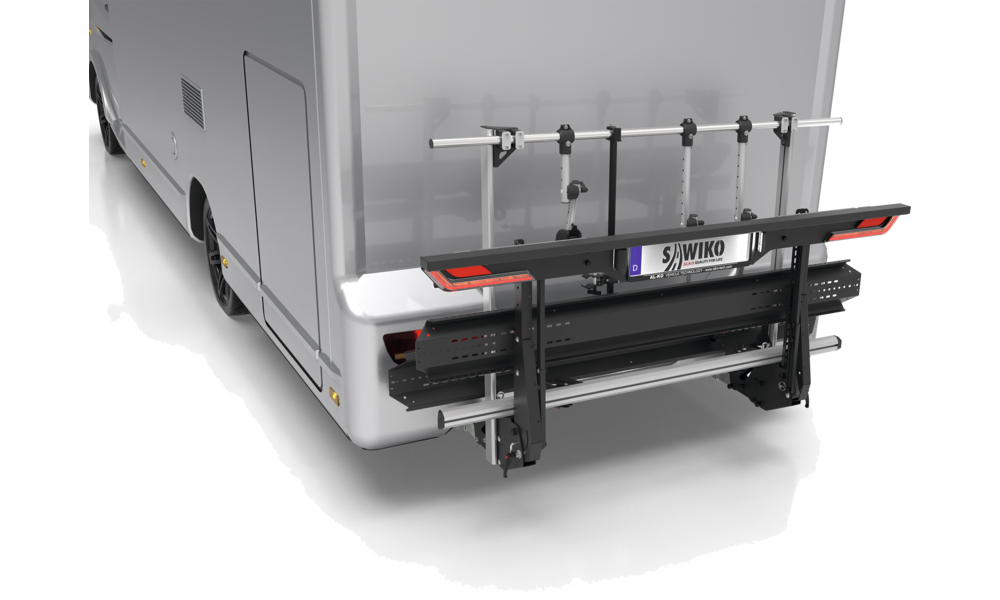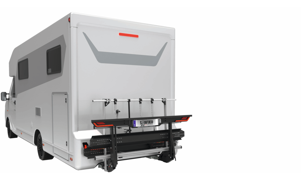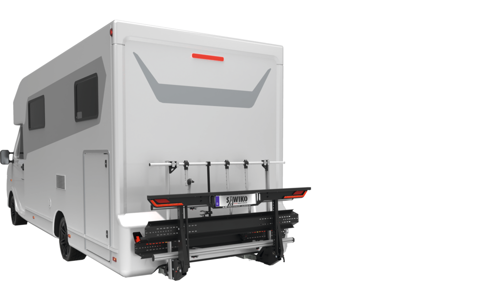 Fahrräder und Roller sind auch spezielle Rüstsätze für Fat Bikes und Tricycles erhältlich. Dank hochwertiger Materialien zeichnet er sich durch ein geringes Eigengewicht und eine hohe Nutzlast von bis zu 150 kg* aus. Mit der hochklappbaren Transportplattform und dem automatisch anklappenden Leuchtenträger bietet der VARIO eine mühelose Handhabung.