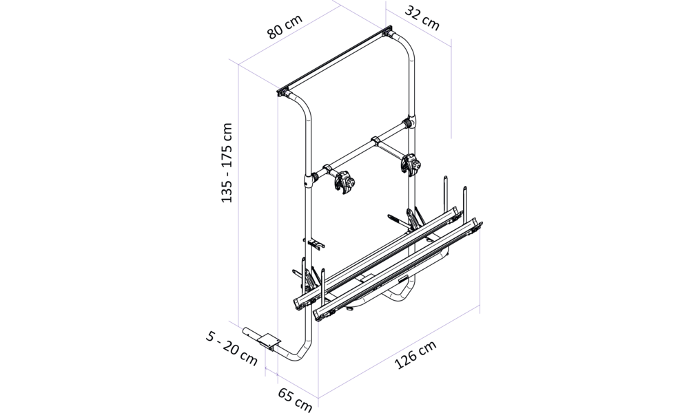 Zur Montage an der hinteren Wohnwagenwand. Die tragende Befestigung erfolgt unter dem Wohnwagen.