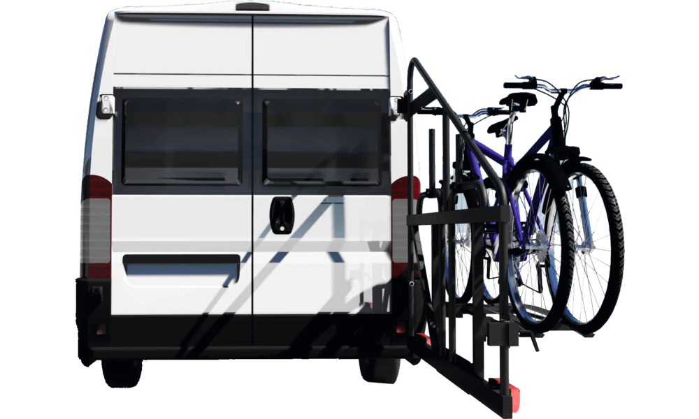 Fahrradträgersystem für Fiat Ducato, Citroën Jumper, Peugeot Boxer (ab Bj. 2006) und Opel Movano (ab Bj. 2021), das für den Transport aller Arten von Fahrrädern geeignet