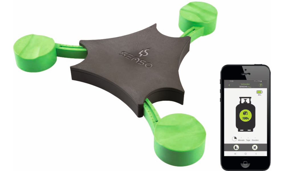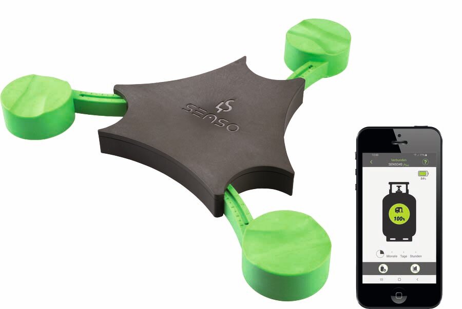 Der Füllstandsmesser Senso4s PLUS misst das Gewicht der Gasflasche und übermittelt diesen Wert per Bluetooth an die App.