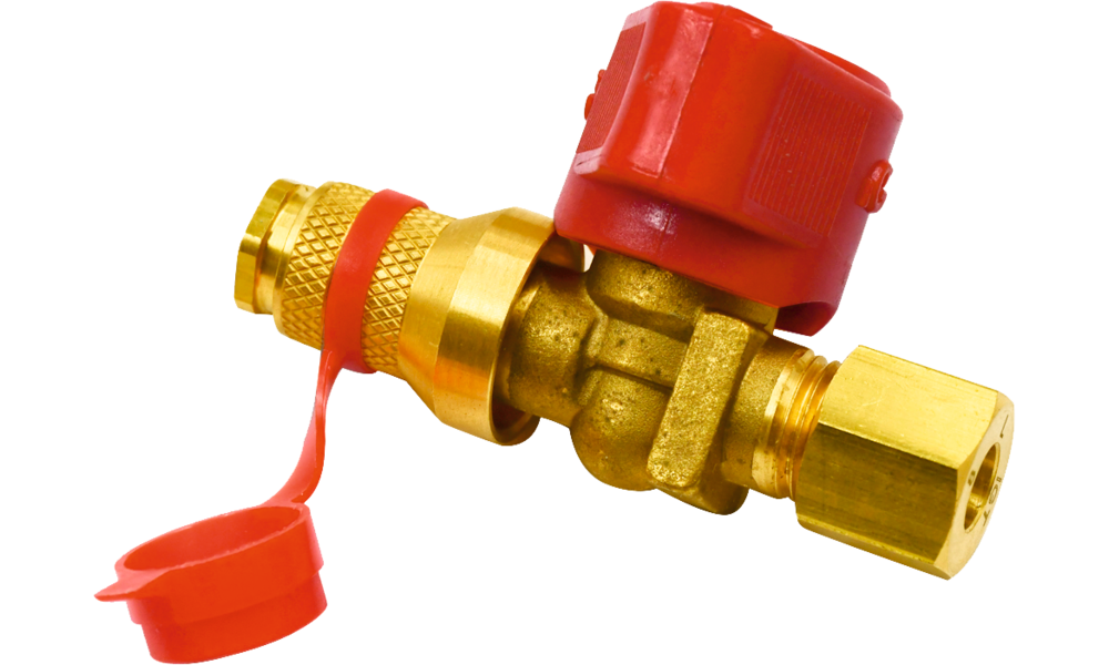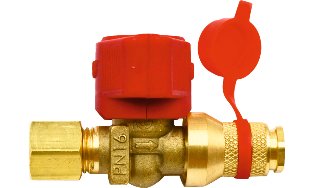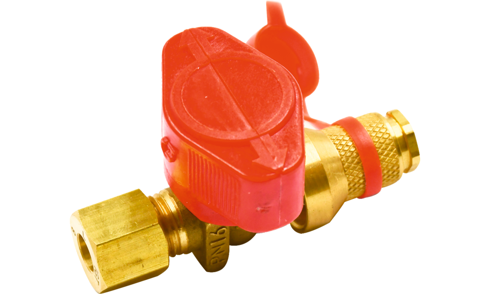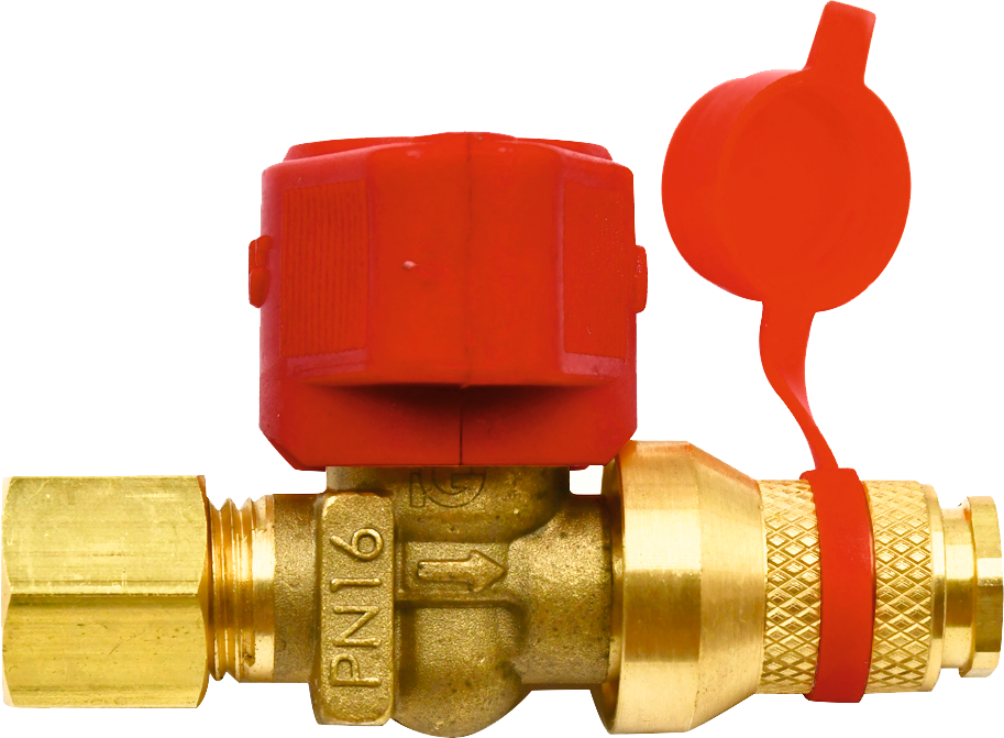 Mit Sicherheitskupplung, Verbinden und Trennen nur bei geschlossenem Ventil möglich.