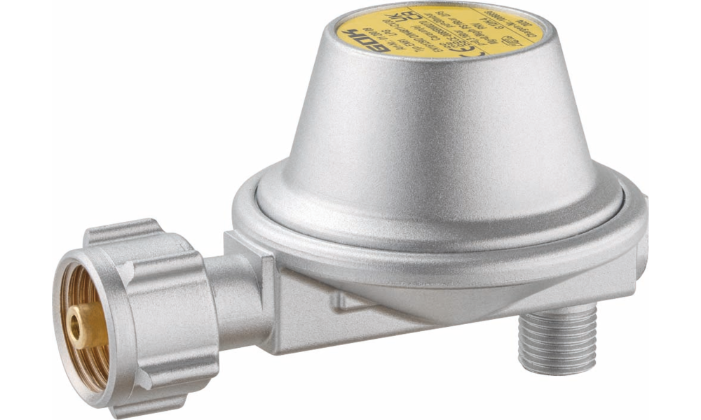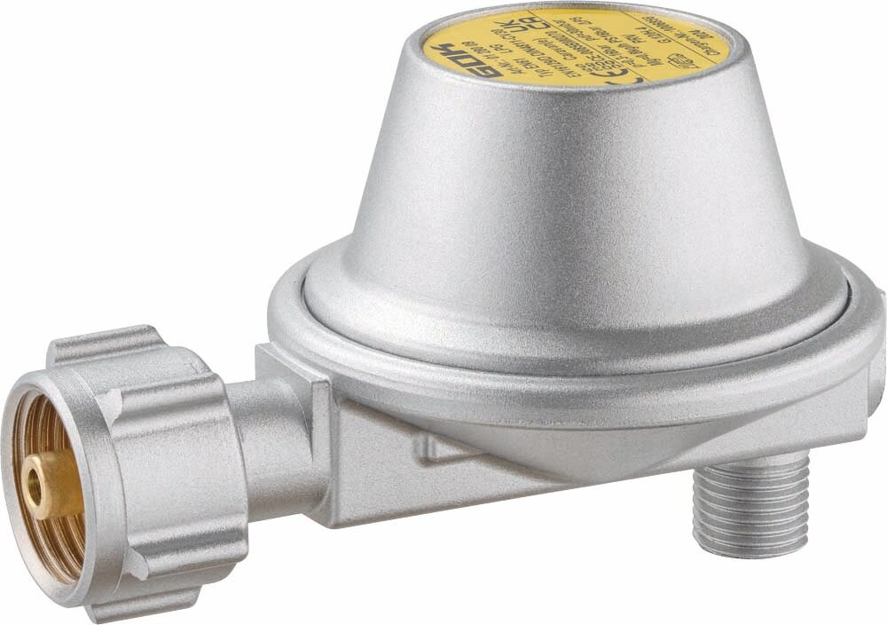 Niederdruckregler L-Form. Mit verlängertem Eingangsstutzen, Abgang 90°.