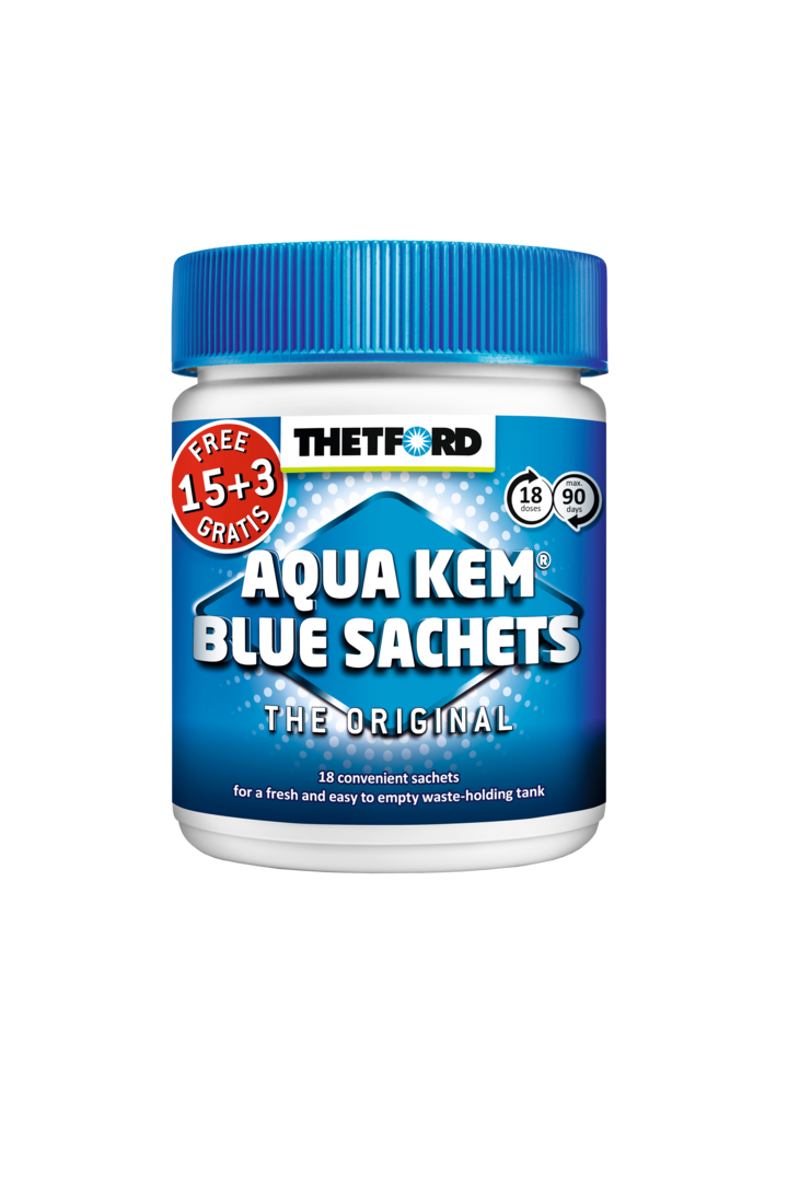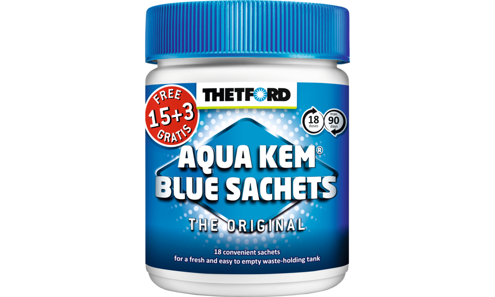 Die Thetford Aqua Kem Blue Sachets - 15 + 3 halten Ihre tragbare Toilette frisch und geruchsfrei.