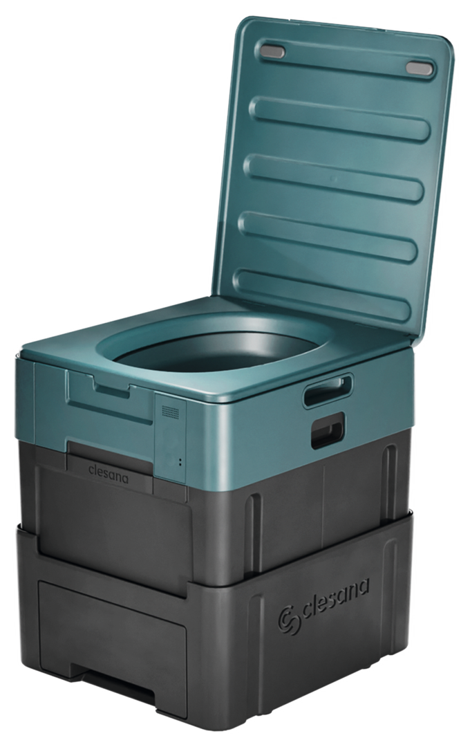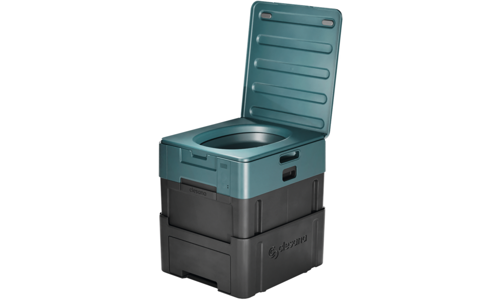 Die Clesana X1 ist eine Toilette, die sich wie ein Ausrüstungsstück benimmt. Im Packmaß misst sie 38 × 34 × 30 Zentimeter und bleibt damit kleiner als eine klassische Porta Potti. Elf Kilogramm sind für den Transport gut beherrschbar. Seitliche Eingriffmulden und ein frontseitig ausbalancierter Griff erlauben das einhändige Tragen zum Stellplatz oder die Treppe hinauf in den Schrebergarten. Entscheidend ist der Teleskop‑Mechanismus: In weniger als einer Sekunde fährt die X1 in Nutzungsposition aus – ohne Kraftakt, ohne Gefummel. Danach steht eine Sitzhöhe von rund 41 Zentimetern bereit, nach DIN‑Standard und damit erstaunlich nah am Zuhause‑Gefühl.