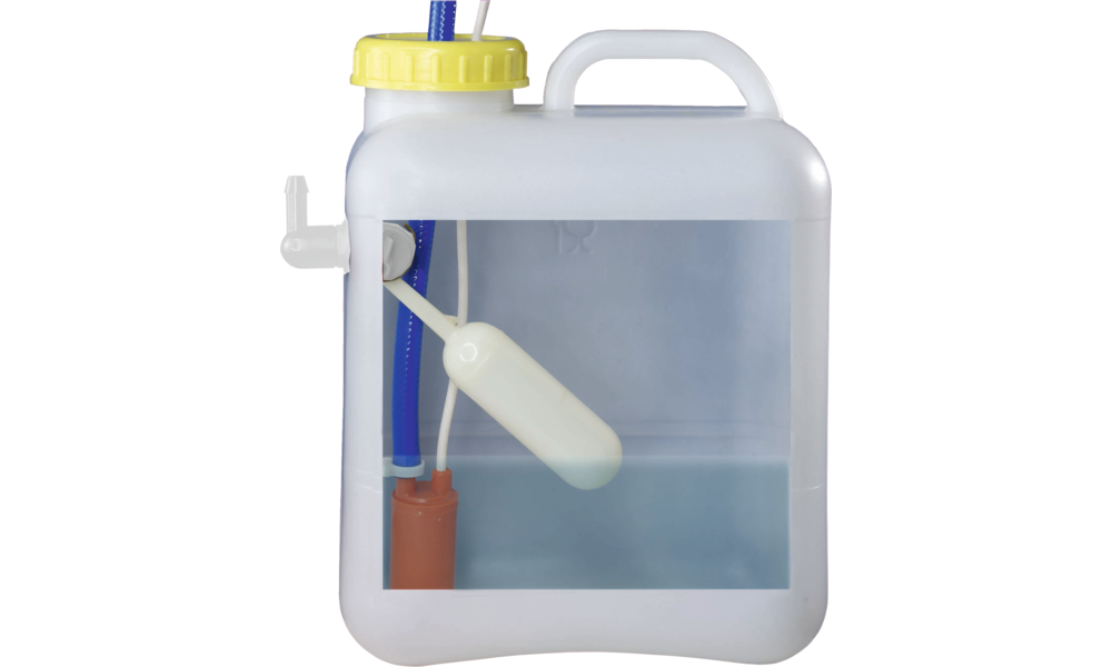 Wasserzufuhr vom Wassernetz ab, sobald das maximale Wasserniveau erreicht ist, bei sinkendem Wasserspiegel öffnet das Ventil selbstständig. Wasserentnahme ist mit jeder Tauchpumpe möglich. Lieferung ohne Kanister.