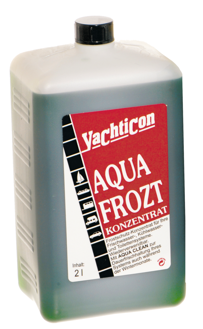 Aqua Frozt. Schützt das Frischwasser-, Trinkwasser- und Toilettensystem vor dem Einfrieren. Erspart das Entwässern. Konzentrat - unverdünnt bis -59° C einsetzbar.