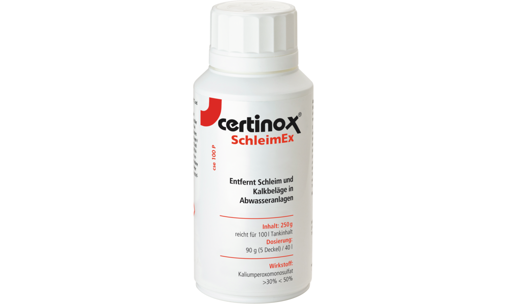 certinox® SchleimEx. Übelriechende Beläge im Abwassertank werden mit Aktivsauerstoff und Fettlöser gründlich entfernt.