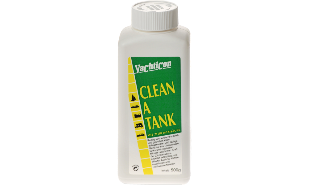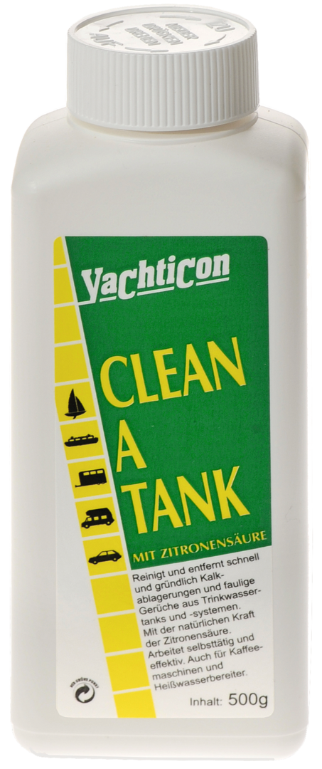 Clean A Tank. Spezielles Mittel zum Reinigen der Tanks von Kalkablagerungen und verstopften Leitungen. Befreit das Wasser von schlechtem, fauligem Geschmack. Mit Zitronensäure. Ausreichend für 50 l.