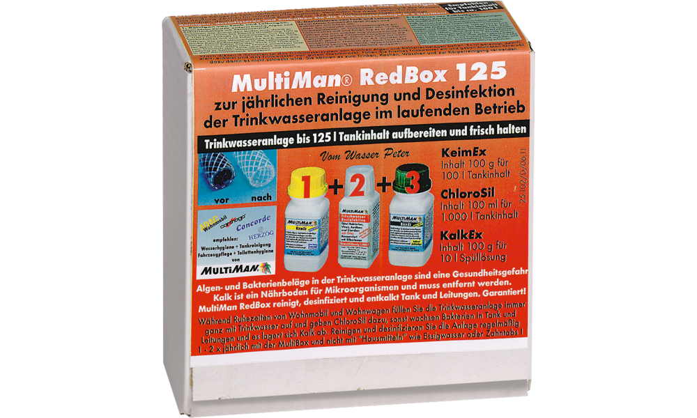Für die jährliche Aufbereitung von Trinkwasseranlagen in Caravan und Boot.