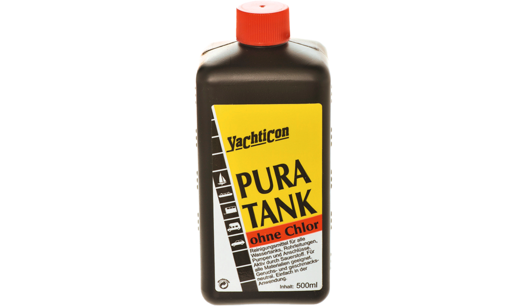 Pura Tank. Reinigungsmittel für alle Wassertanks, Rohrleitungen, Pumpen und Anschlüsse. Für alle Materialien geeignet. Ohne Chlor.