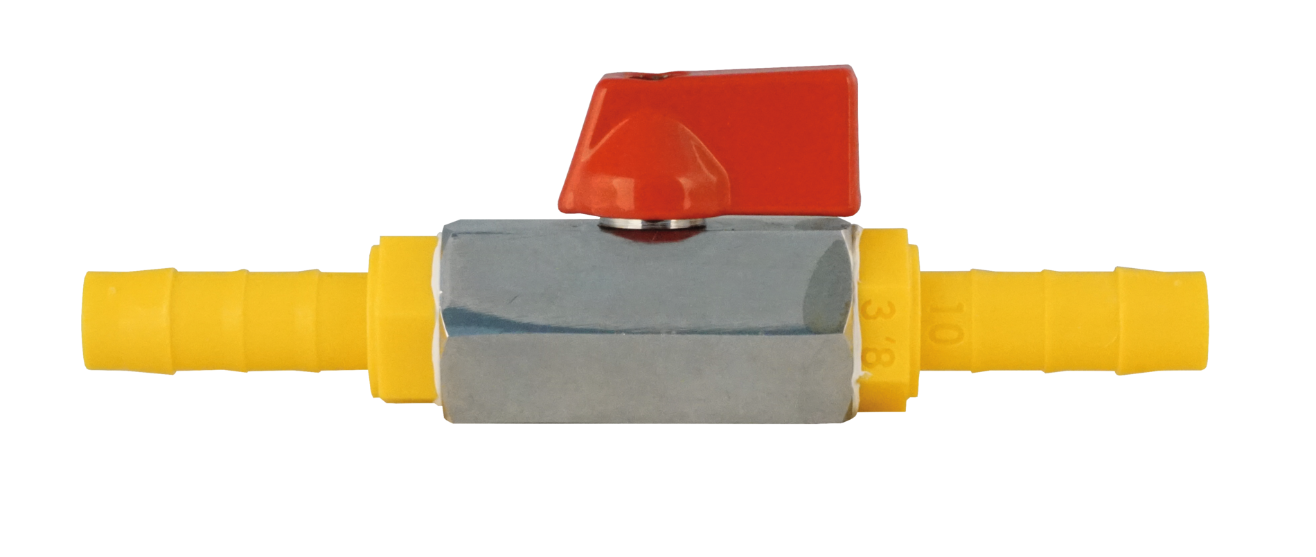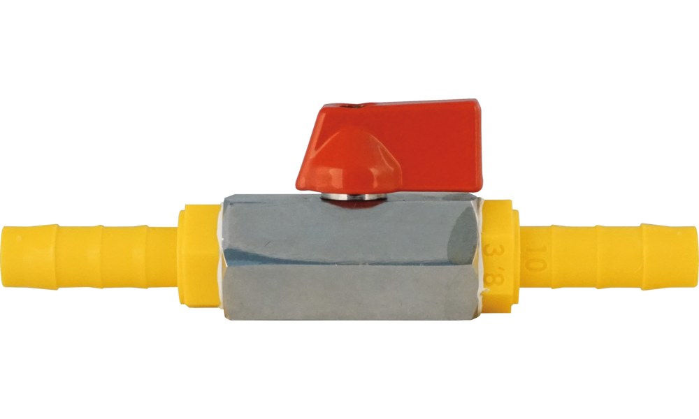 Absperrhahn mit beidseitigem Schlauchanschluss im Trinkwassersystem WeißGelb®.