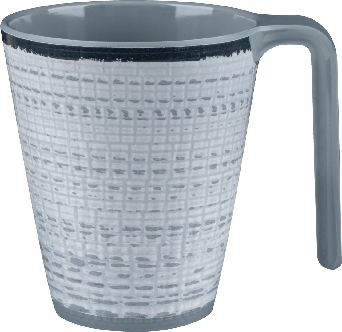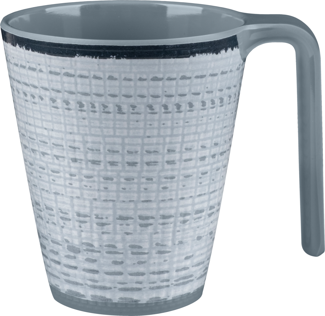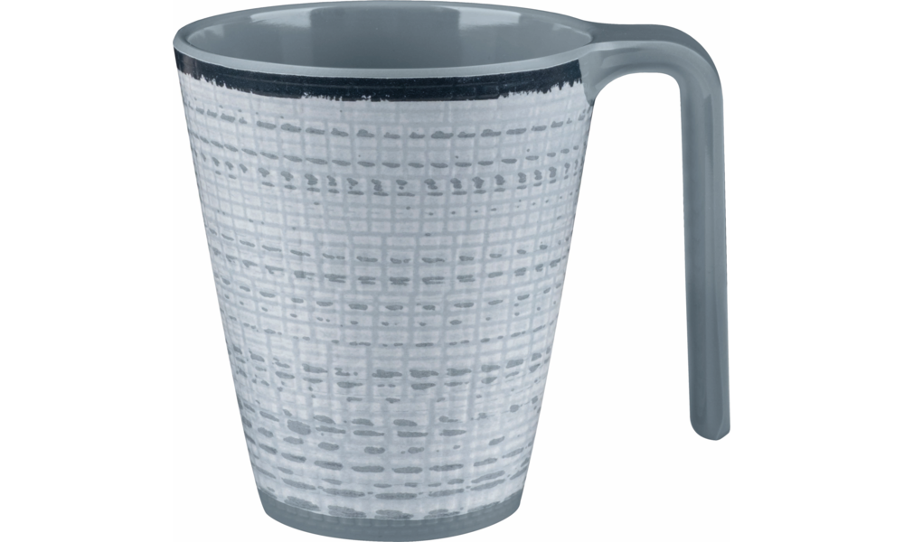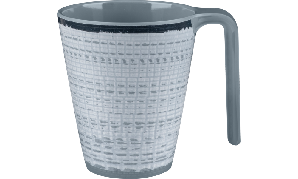 Geschirrserie TIVOLI. Geschirr aus hochwertigem Melamin. Alle Teile dieser Serie sind mit einer integrierten Anti-Rutsch-Dichtung ausgestattet. Spülmaschinengeeignet, bruchunempfindlich und lebensmittelecht. Nicht mikrowellengeeignet! Henkelbecher 30 cl