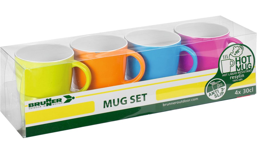Henkelbecher-Set SPECTRUM. 4-teiliges Henkelbecher-Set aus hochwertigem Resylin. Volumen 0,3 l.