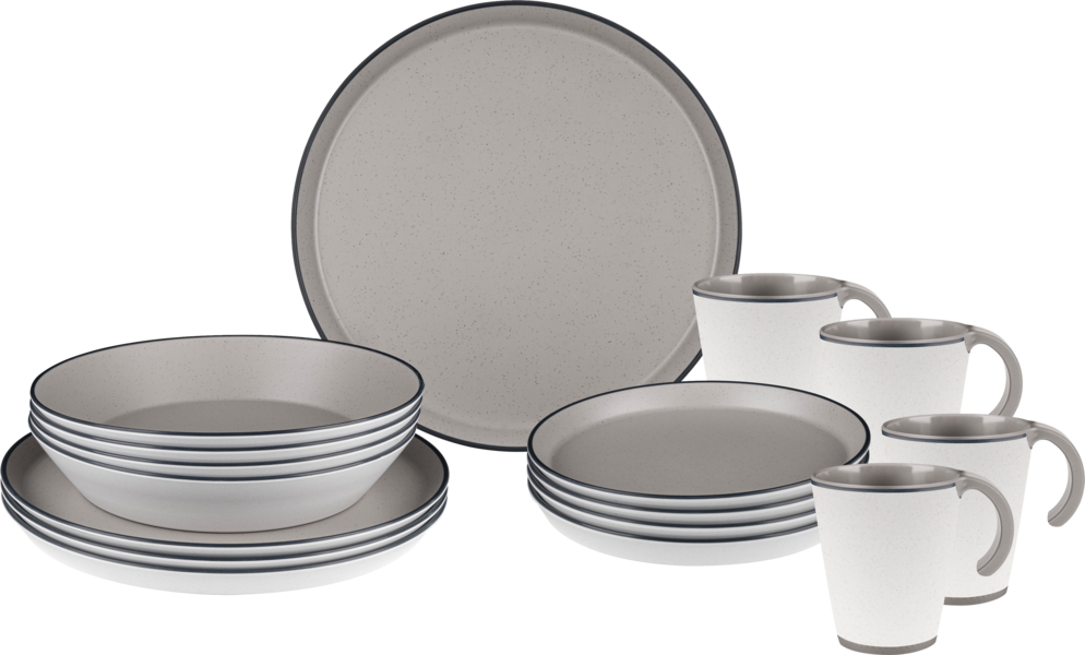 Die Geschirrserie ICONIC COMPACK wurde mit einem klaren Fokus auf Effizienz und Stil entworfen. Das Set aus unserem innovativem, dreifarbigem Stonetouch-Melamin überzeugt durch seine besonderen Eigenschaften, die es zu einem idealen Reisebegleiter machen.
