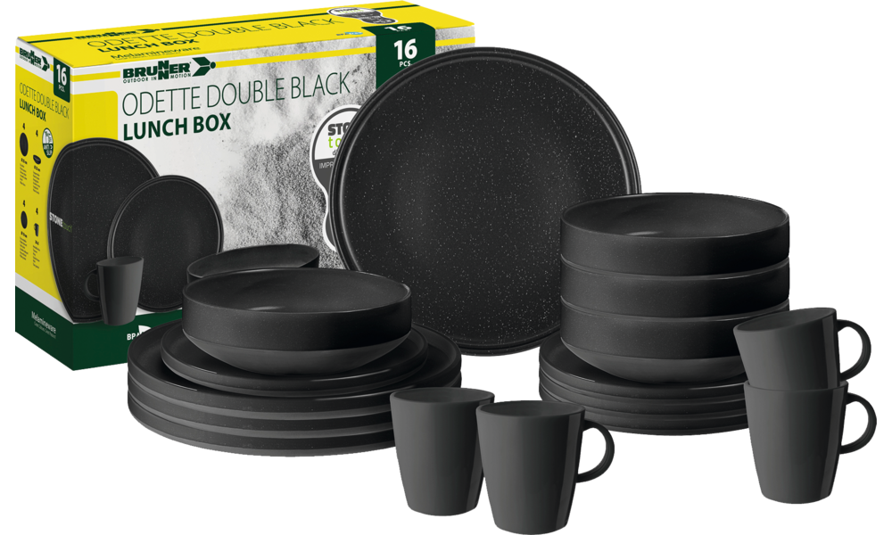 16-teiliges Set bestehend aus 4 Esstellern ø 25 cm, 4 Suppentellern ø 23 cm, 4 Desserttellern ø 19 cm und 4 Henkelbechern 30 cl.