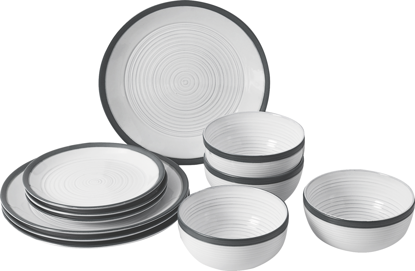 Midday Set BELLAGIO. 12-teiliges Set bestehend aus 4 Schüsseln ø 15 cm, 4 Esstellern ø 26 cm und 4 Desserttellern ø 21 cm.