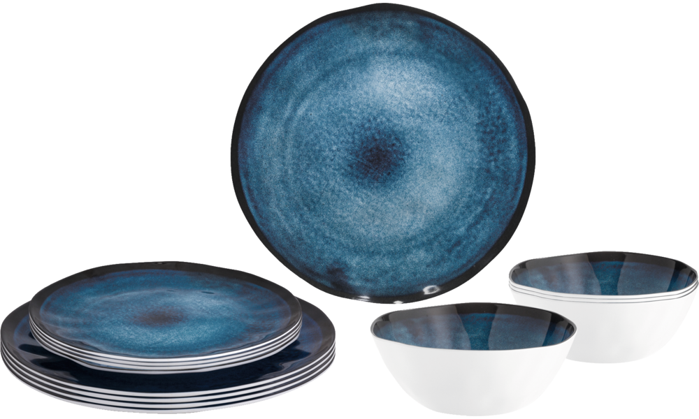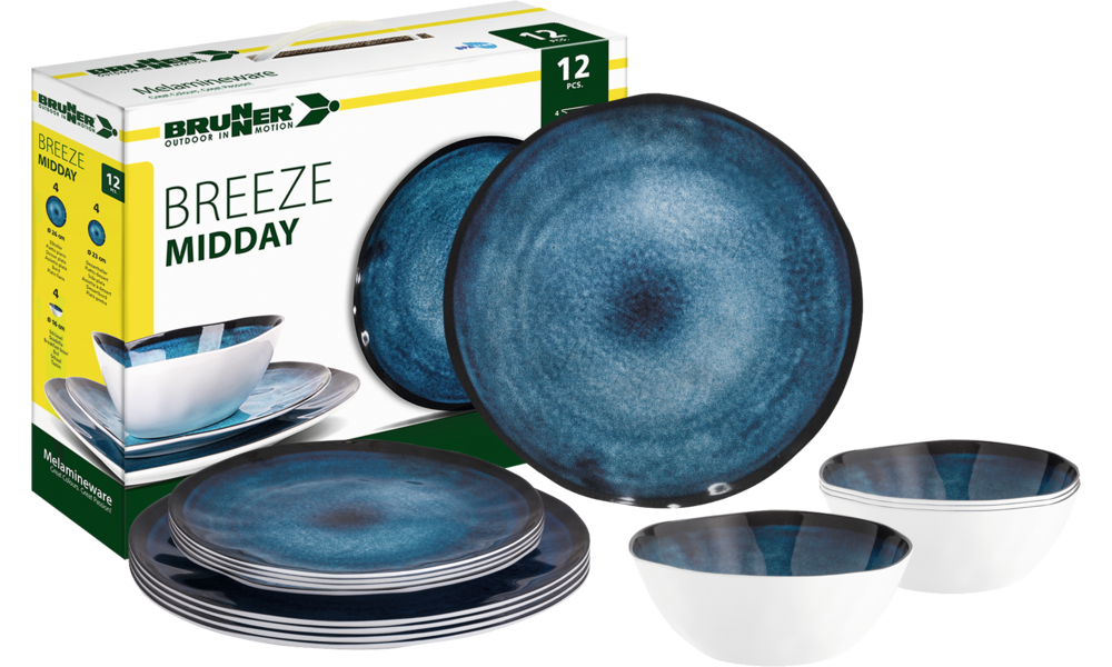 Midday Set BREEZE. 12-teiliges Set bestehend aus 4 Esstellern ø 26 cm, 4 Desserttellern ø 22 cm und 4 Schüsseln ø 15 cm.