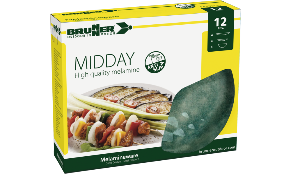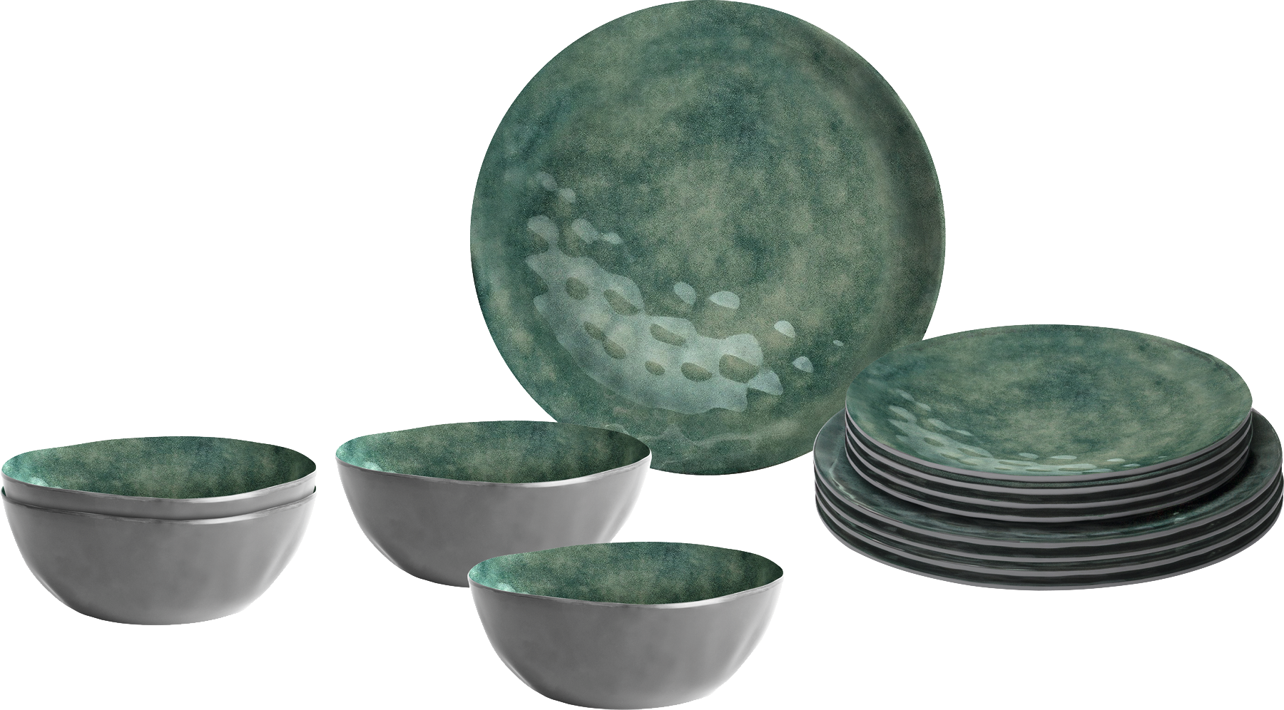 12-teiliges Set bestehend aus 4 Esstellern ø 25 cm, 4 Desserttellern ø 21 cm und 4 Schüsseln ø 18 cm.