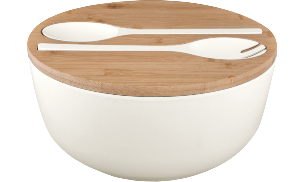 Salatschüssel GREENKICK. Besteck kann direkt im Deckel verstaut werden. Deckel kann auch als Schneidebrett verwendert werden.Salatschüssel ø 25 cm.