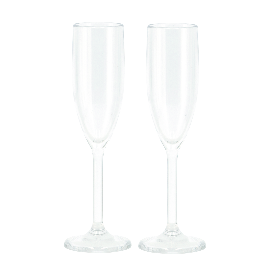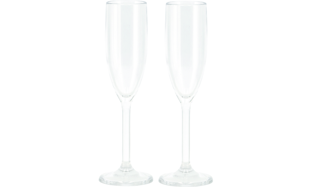 Gläserset FERIA. Aus 100 % MS-Material und speziell für den Outdoor-Bereich konzipiert. Sie sind kratz- und spülmaschinenfest und ultraleicht. Nicht mikrowellengeeignet. 2er Set. Sektglas clear 125 ml.